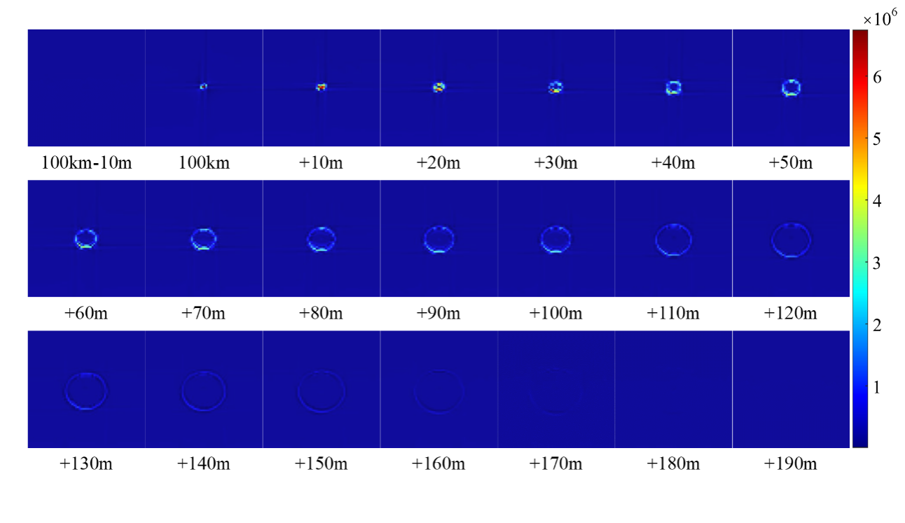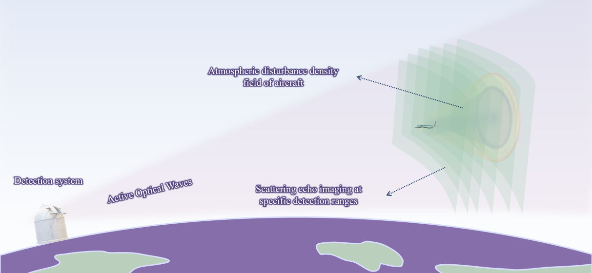 研究團隊提出,利用主動光源探測大氣擾動密度場特征,從而遠距離感知飛行器存在的構想。根據大范圍擾動物理場的流體模擬數據分析了空間異質特性,針對性地設計了對大氣擾動區域散射光進行三維層析成像的探測模式。構建了飛行器擾動密度場空間分布模型和光散射回波成像仿真模型,模擬了地基探測平臺百公里級遠距離光散射回波圖像。在此基礎上,提出了擾動信號提取方法,重點分析了探測分辨尺度與擾動光學信號特征強度之間的相關性規律,進而闡明擾動密度場特征的光信號轉換關系。